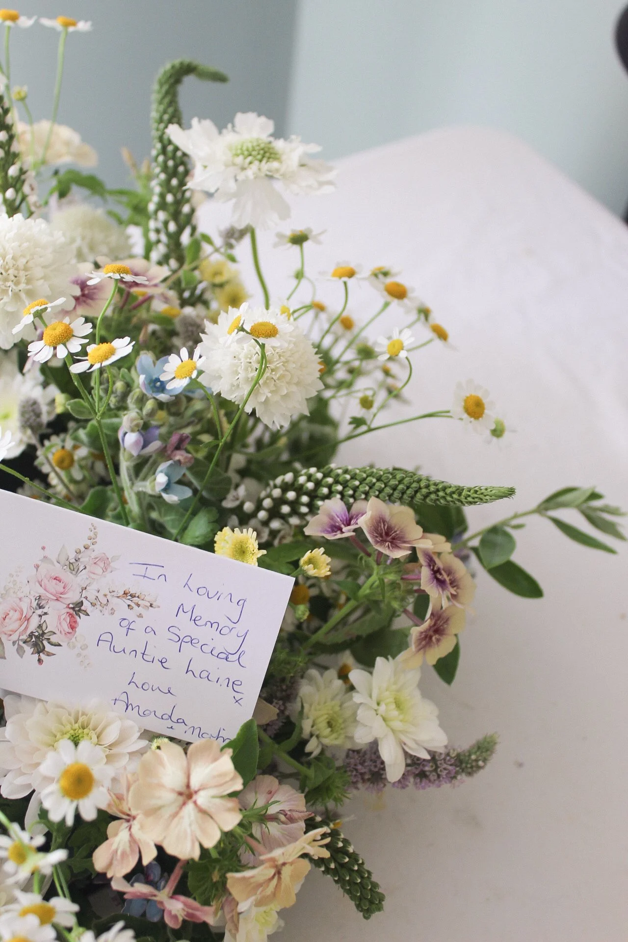 Organising flowers for your loved ones funeral can feel like your final gift to them. It is important to me for those arrangements to reflect your loved one in as many ways as possible. This may be by using there favourite colours or perhaps including the memorable variety of flowers that grew in their own garden. I will work with you to provide a completely unique design that truly feels like them.